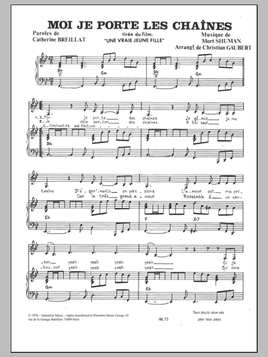 Download or print Mort Shuman Moi Je Porte Les Chaines sheet music, chords and digital score arranged for Piano & Vocal. This Pop score includes 2 page(s).