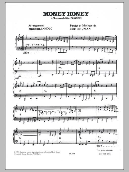 Download or print Mort Shuman Money Honey sheet music, chords and digital score arranged for Piano & Vocal. This Pop score includes 3 page(s).