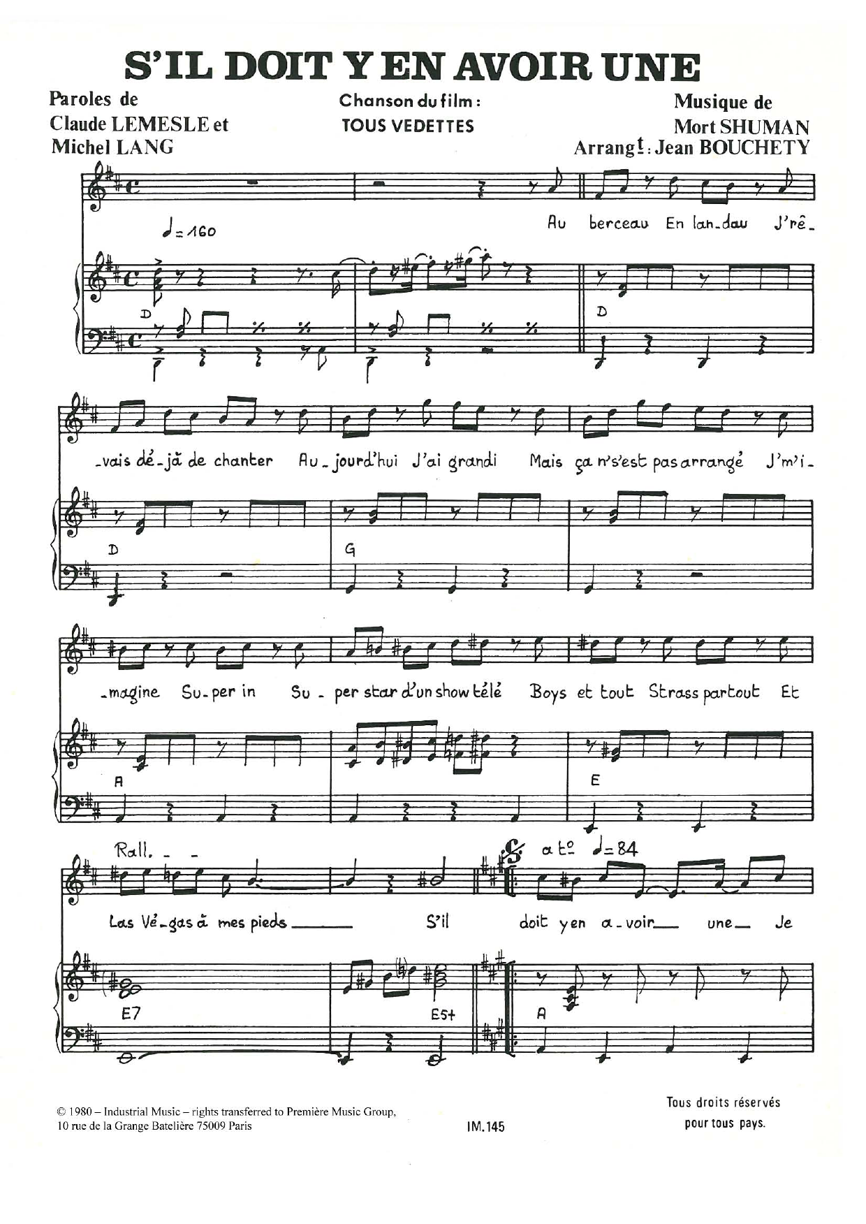 Download or print Mort Shuman S'il Doit Y En Avoir Une sheet music, chords and digital score arranged for Piano & Vocal. This Standards score includes 2 page(s).