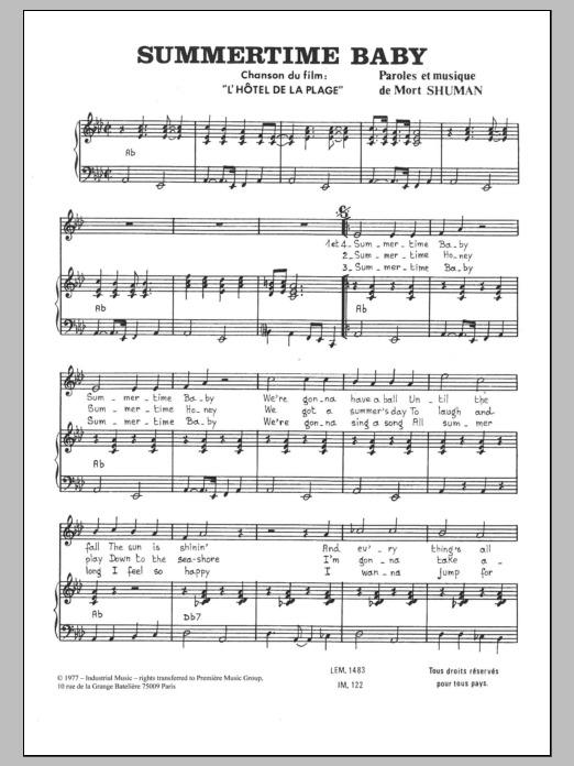 Download or print Mort Shuman Summertime Baby sheet music, chords and digital score arranged for Piano & Vocal. This Pop score includes 3 page(s).