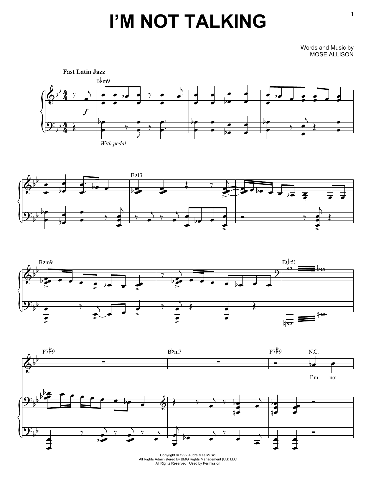Download or print Mose Allison I'm Not Talking sheet music, chords and digital score arranged for Piano & Vocal. This Blues score includes 7 page(s).