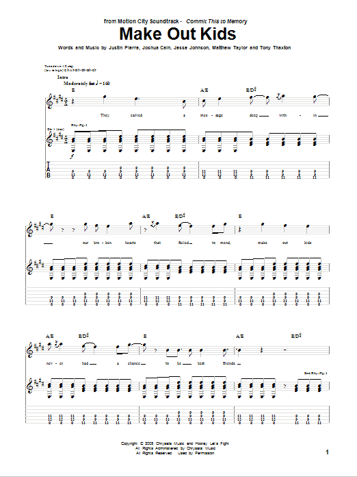 Download or print Motion City Soundtrack Make Out Kids sheet music, chords and digital score arranged for Guitar Tab. This Pop score includes 8 page(s).