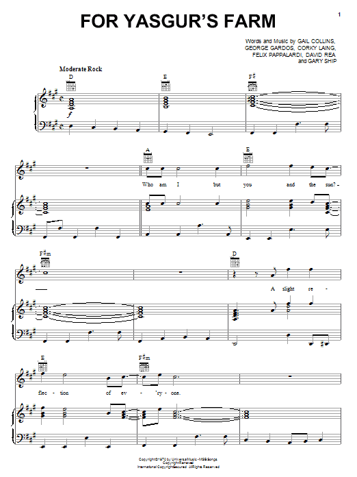 Quick facts For Yasgur's Farm about digital sheet music