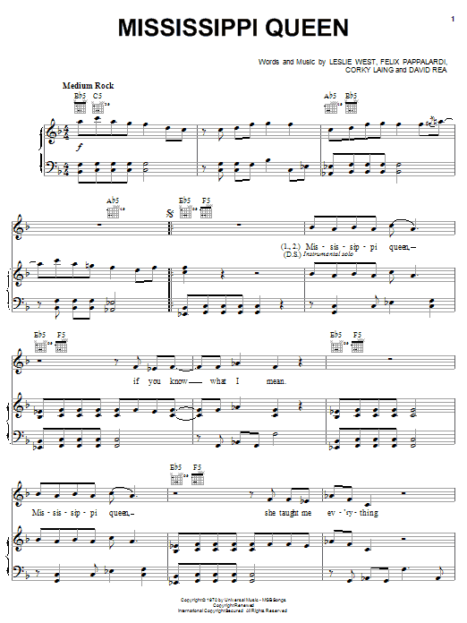 Download or print Mountain Mississippi Queen sheet music, chords and digital score arranged for Piano, Vocal & Guitar Chords (Right-Hand Melody). This Country score includes 3 page(s).