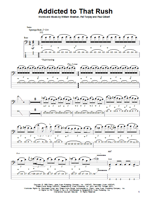 Download or print Mr. Big Addicted To That Rush sheet music, chords and digital score arranged for Guitar Tab. This Pop score includes 15 page(s).