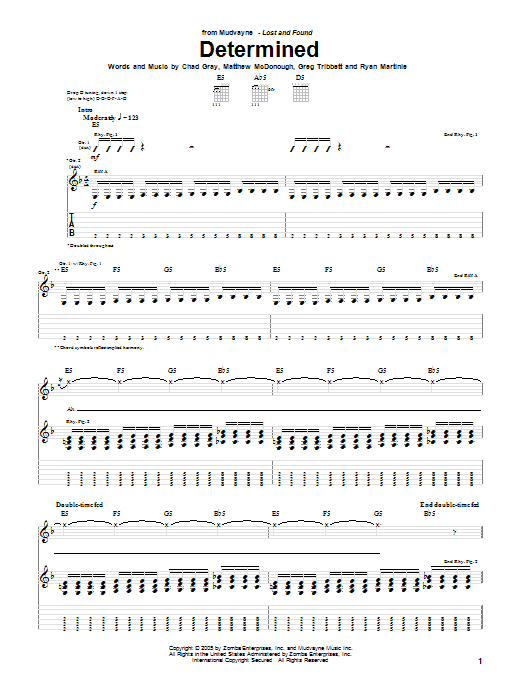 Download or print Mudvayne Determined sheet music, chords and digital score arranged for Bass Guitar Tab. This Metal score includes 8 page(s).