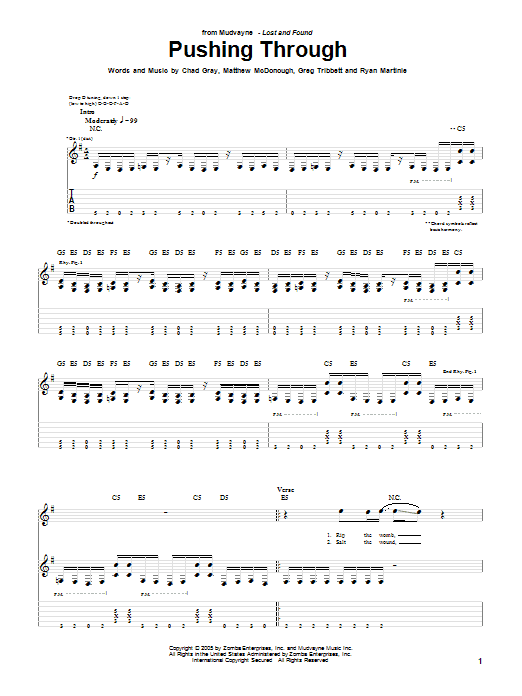 Download or print Mudvayne Pushing Through sheet music, chords and digital score arranged for Bass Guitar Tab. This Metal score includes 10 page(s).