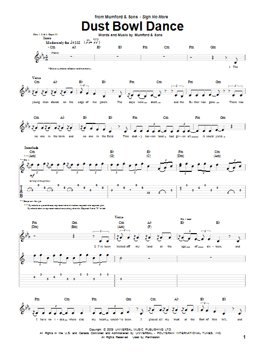 Download or print Mumford & Sons Dust Bowl Dance sheet music, chords and digital score arranged for Guitar Tab. This Folk score includes 6 page(s).
