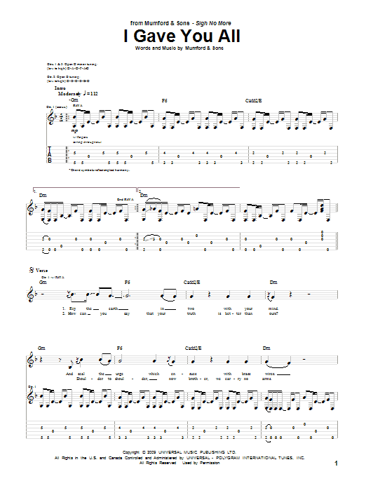Download or print Mumford & Sons I Gave You All sheet music, chords and digital score arranged for Piano, Vocal & Guitar Chords. This Folk score includes 7 page(s).