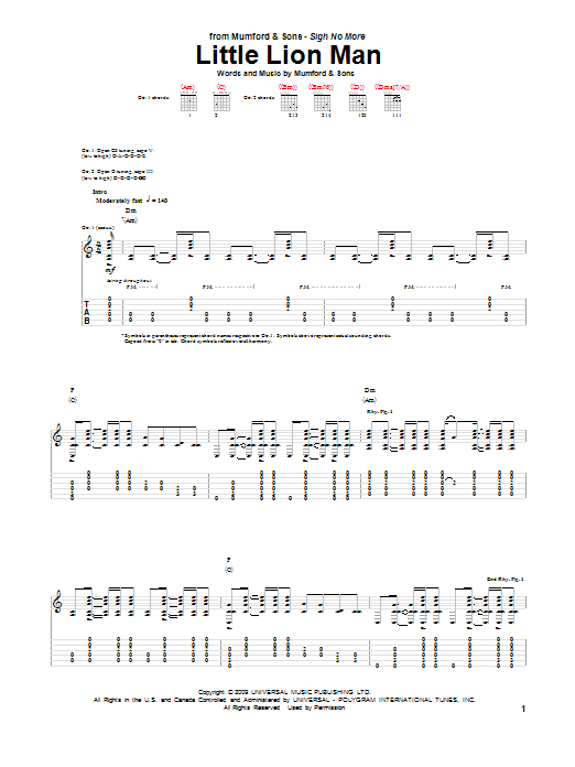 Download or print Mumford & Sons Little Lion Man sheet music, chords and digital score arranged for Piano, Vocal & Guitar Chords (Right-Hand Melody). This Folk score includes 11 page(s).