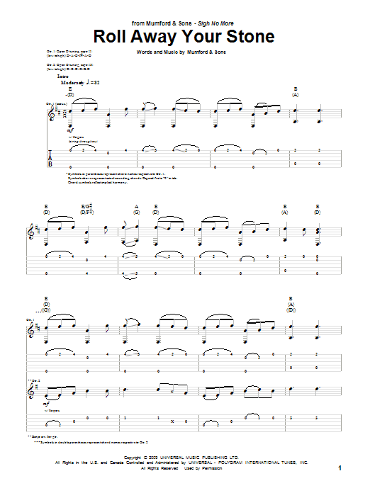 Download or print Mumford & Sons Roll Away Your Stone sheet music, chords and digital score arranged for Piano, Vocal & Guitar Chords. This Folk score includes 9 page(s).