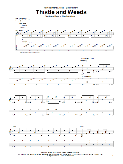 Download or print Mumford & Sons Thistle And Weeds sheet music, chords and digital score arranged for Piano, Vocal & Guitar Chords (Right-Hand Melody). This Folk score includes 8 page(s).