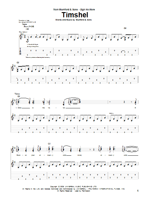 Download or print Mumford & Sons Timshel sheet music, chords and digital score arranged for Piano, Vocal & Guitar Chords. This Folk score includes 4 page(s).