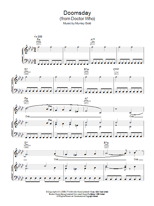 Download or print Murray Gold Doomsday (from Doctor Who) sheet music, chords and digital score arranged for Piano, Vocal & Guitar Chords. This Film/TV score includes 8 page(s).