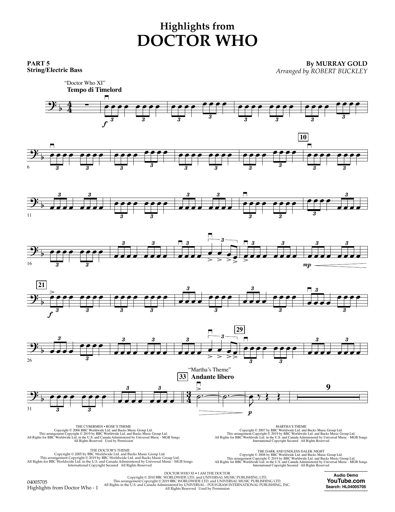 Quick facts Highlights from Doctor Who (arr. Robert Buckley) - Pt.5 - String/Electric Bass about digital sheet music
