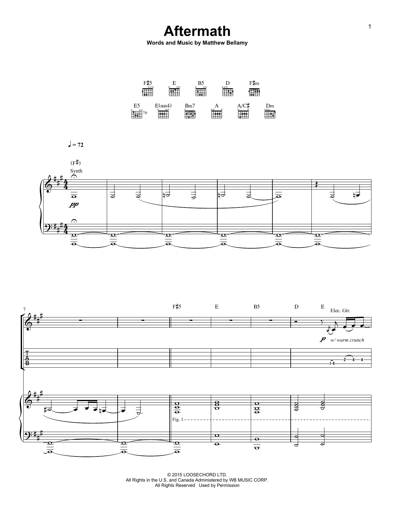Download or print Muse Aftermath sheet music, chords and digital score arranged for Piano, Vocal & Guitar Chords (Right-Hand Melody). This Pop score includes 7 page(s).