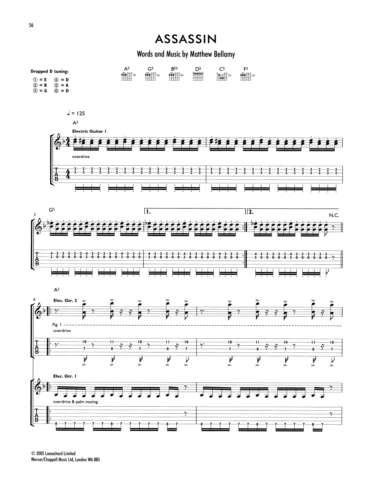 Download or print Muse Assassin sheet music, chords and digital score arranged for Guitar Tab. This Rock score includes 8 page(s).