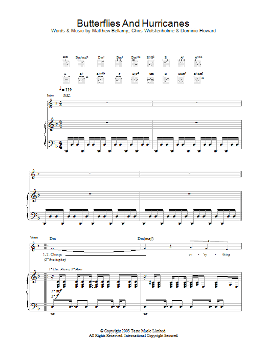 Download or print Muse Butterflies And Hurricanes sheet music, chords and digital score arranged for Guitar Tab. This Alternative score includes 8 page(s).