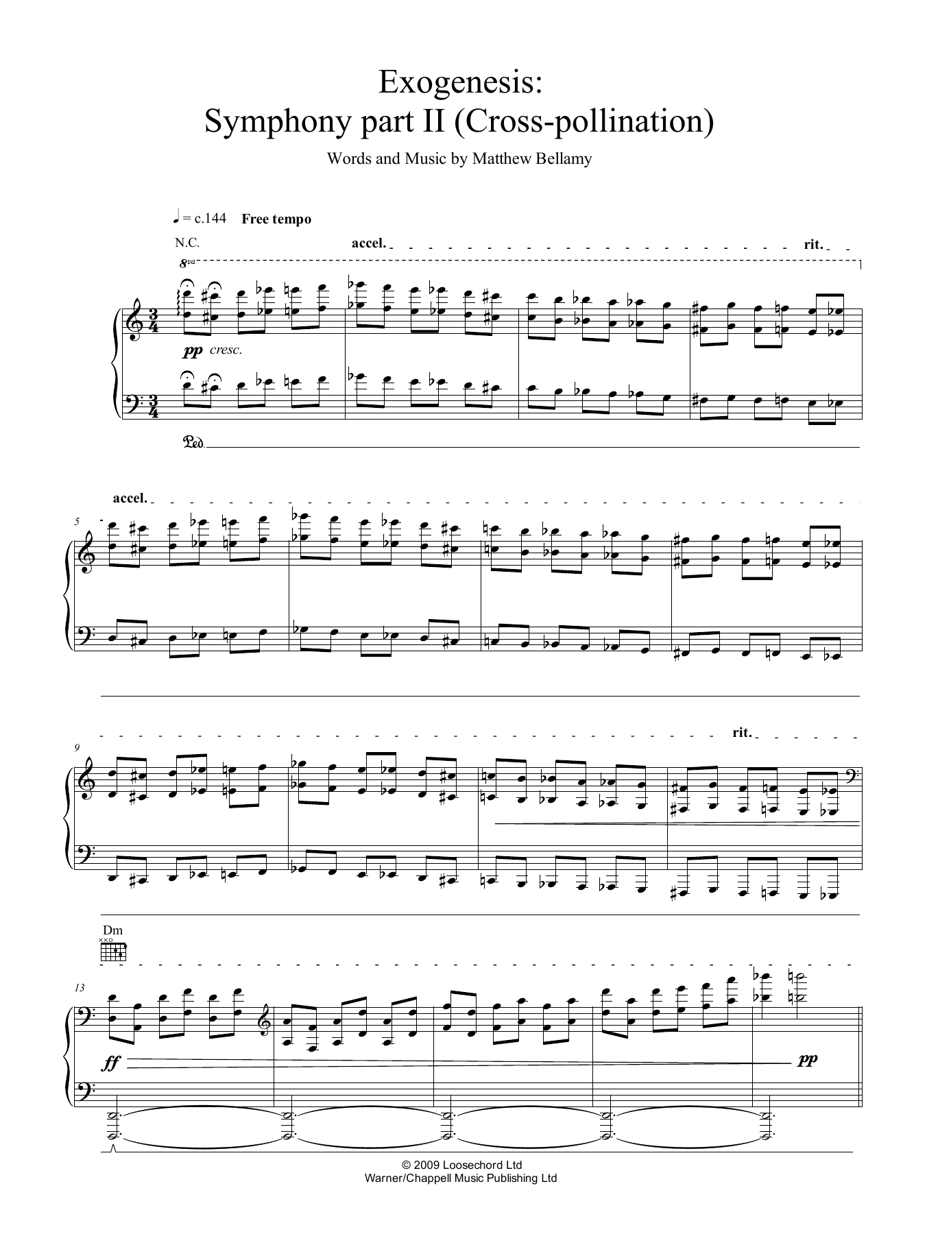 Download or print Muse Exogenesis: Symphony Part II (Cross Pollination) sheet music, chords and digital score arranged for Piano, Vocal & Guitar Chords (Right-Hand Melody). This Pop score includes 7 page(s).