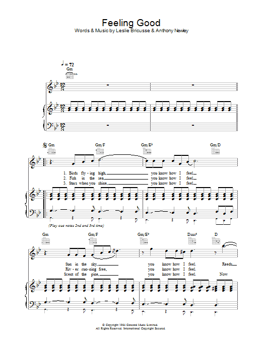 To transpose "Feeling Good", simply click on the "notes" icon located at the bottom of the viewer. If the piece is eligible for transposition, a range of semitone options will be displayed.