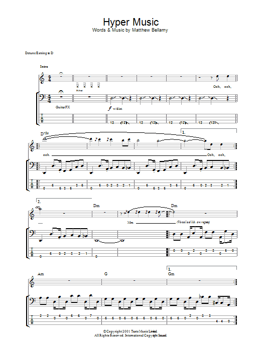 Download or print Muse Hyper Music sheet music, chords and digital score arranged for Lead Sheet / Fake Book. This Rock score includes 4 page(s).