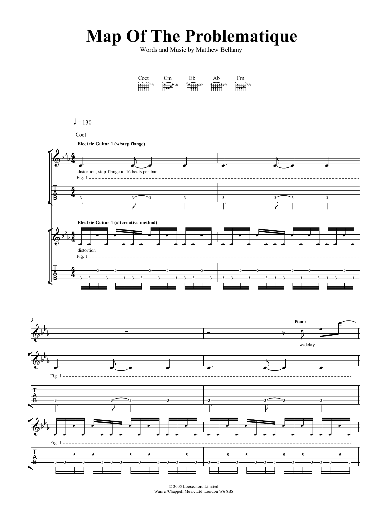 Download or print Muse Map Of The Problematique sheet music, chords and digital score arranged for Guitar Tab. This Rock score includes 9 page(s).