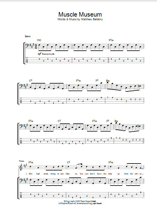 Download or print Muse Muscle Museum sheet music, chords and digital score arranged for Lead Sheet / Fake Book. This Rock score includes 2 page(s).