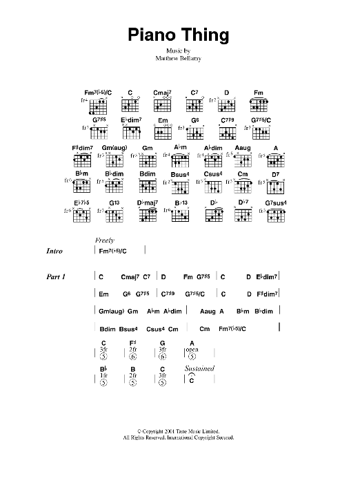 Download or print Muse Piano Thing sheet music, chords and digital score arranged for Guitar Chords/Lyrics. This Rock score includes 2 page(s).