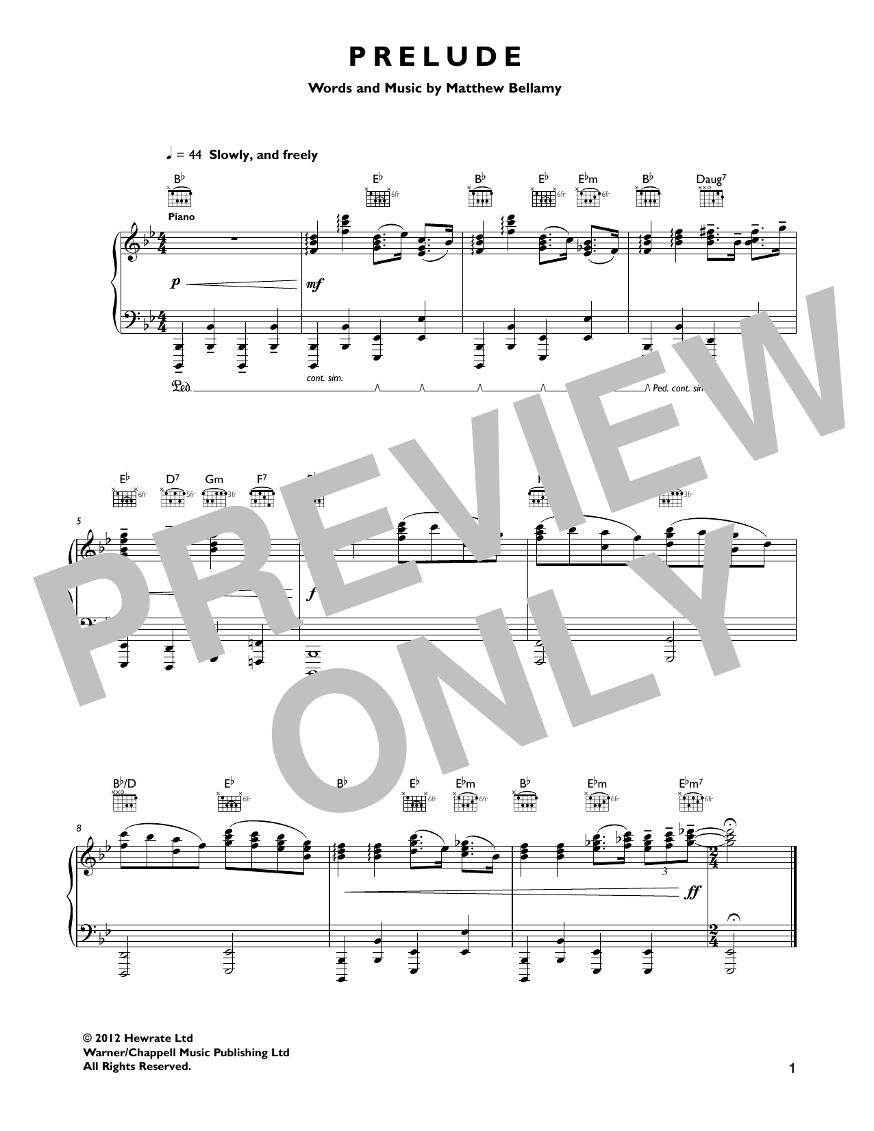 Download or print Muse Prelude sheet music, chords and digital score arranged for Piano, Vocal & Guitar Chords (Right-Hand Melody). This Pop score includes 1 page(s).