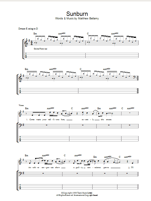 Download or print Muse Sunburn sheet music, chords and digital score arranged for Lead Sheet / Fake Book. This Rock score includes 5 page(s).