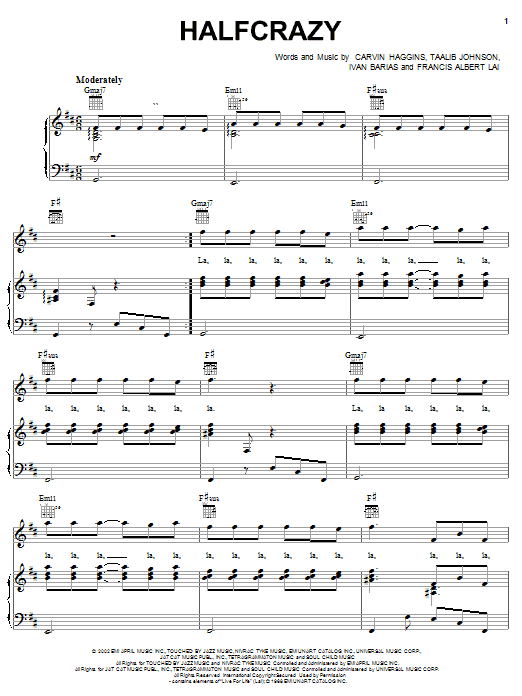 Download or print Musiq Halfcrazy sheet music, chords and digital score arranged for Piano, Vocal & Guitar Chords (Right-Hand Melody). This Pop score includes 8 page(s).