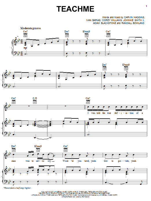 Download or print Musiq Soulchild Teachme sheet music, chords and digital score arranged for Piano, Vocal & Guitar Chords (Right-Hand Melody). This Pop score includes 10 page(s).