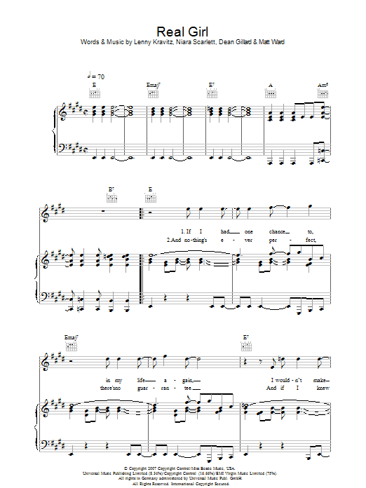 Download or print Mutya Buena Real Girl sheet music, chords and digital score arranged for Piano, Vocal & Guitar Chords. This Pop score includes 9 page(s).