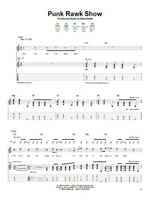 Download or print MxPx Punk Rawk Show sheet music, chords and digital score arranged for Guitar Tab. This Christian score includes 6 page(s).