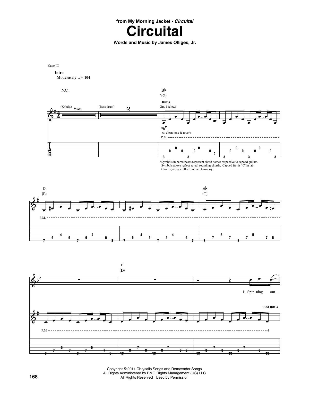 Download or print My Morning Jacket Circuital sheet music, chords and digital score arranged for Guitar Tab. This Rock score includes 18 page(s).