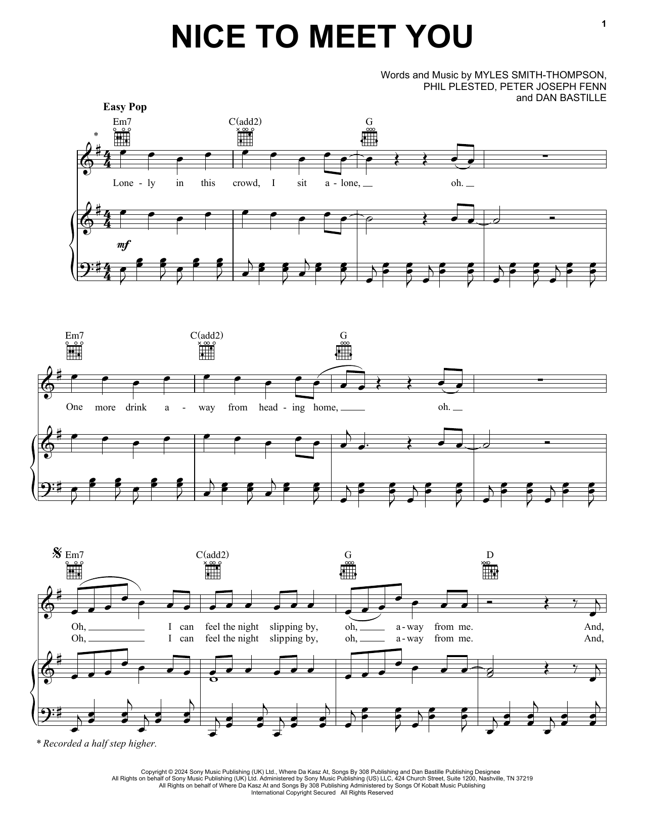 Download or print Myles Smith Nice To Meet You sheet music, chords and digital score arranged for Really Easy Piano. This Pop score includes 3 page(s).