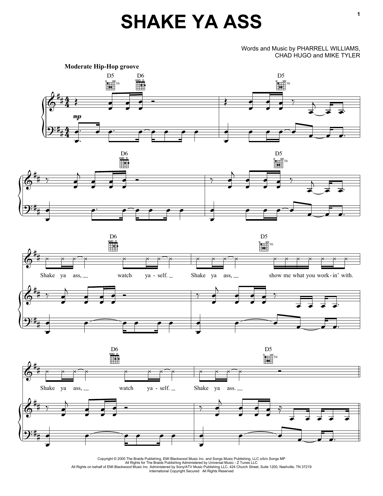 Download or print Mystikal Shake Ya Ass sheet music, chords and digital score arranged for Piano, Vocal & Guitar Chords (Right-Hand Melody). This Pop score includes 7 page(s).