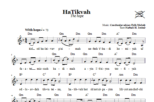 Download or print Naftali H. Imber HaTikvah (The Hope) sheet music, chords and digital score arranged for Lead Sheet / Fake Book. This Traditional score includes 1 page(s).