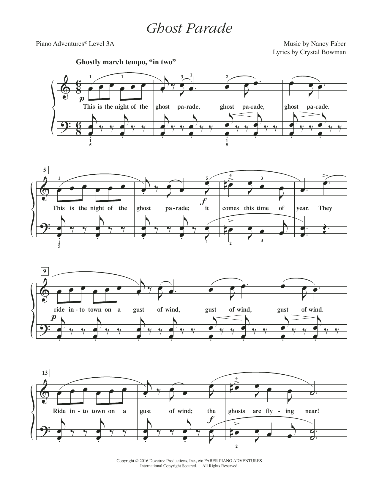 Download or print Nancy Faber Ghost Parade sheet music, chords and digital score arranged for Piano Adventures. This Children score includes 3 page(s).