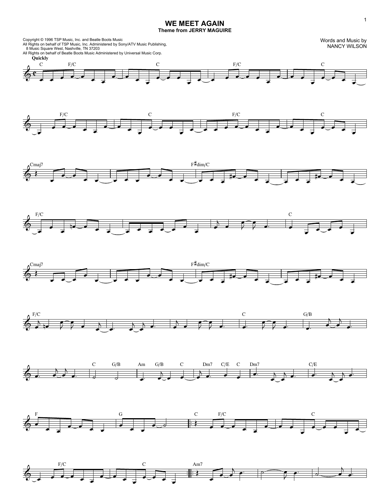 Download or print Nancy Wilson We Meet Again sheet music, chords and digital score arranged for Lead Sheet / Fake Book. This Film/TV score includes 2 page(s).