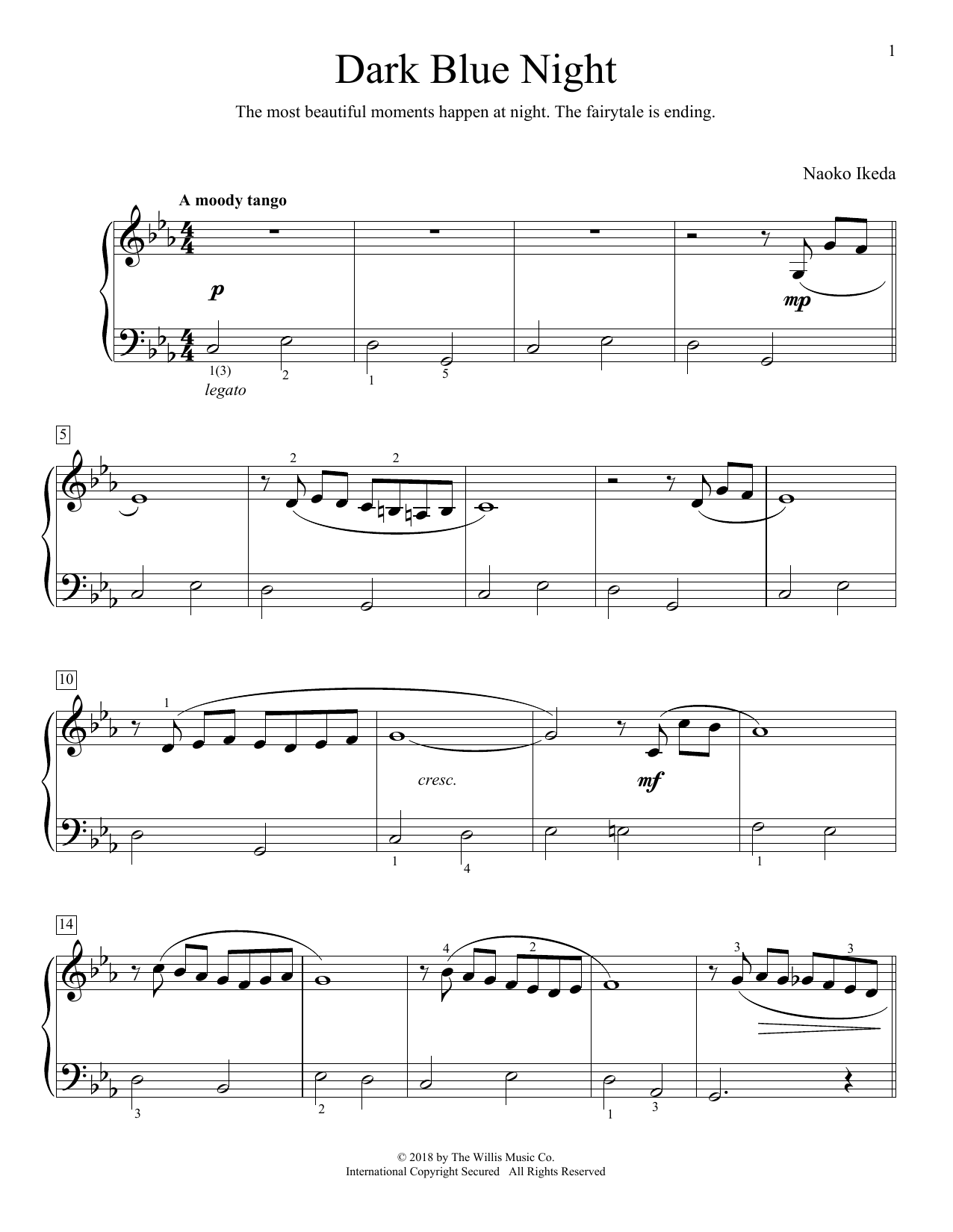 Download or print Naoko Ikeda Dark Blue Night sheet music, chords and digital score arranged for Educational Piano. This Instructional score includes 2 page(s).