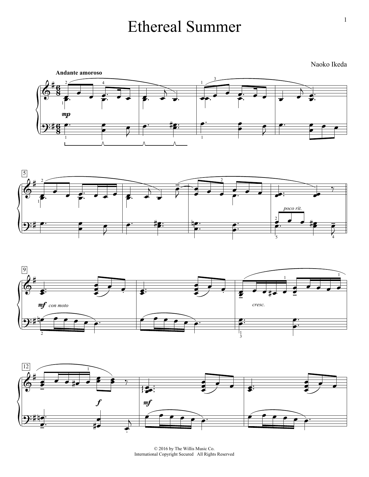 Download or print Naoko Ikeda Ethereal Summer sheet music, chords and digital score arranged for Educational Piano. This Pop score includes 2 page(s).