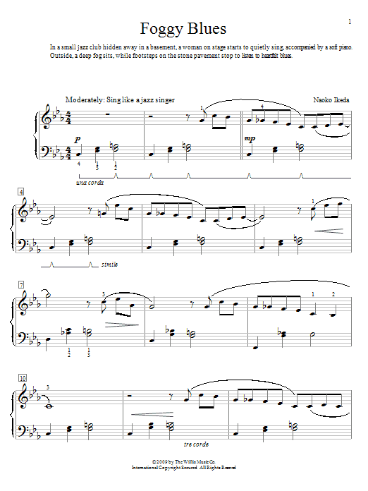 Download or print Naoko Ikeda Foggy Blues sheet music, chords and digital score arranged for Educational Piano. This Blues score includes 3 page(s).