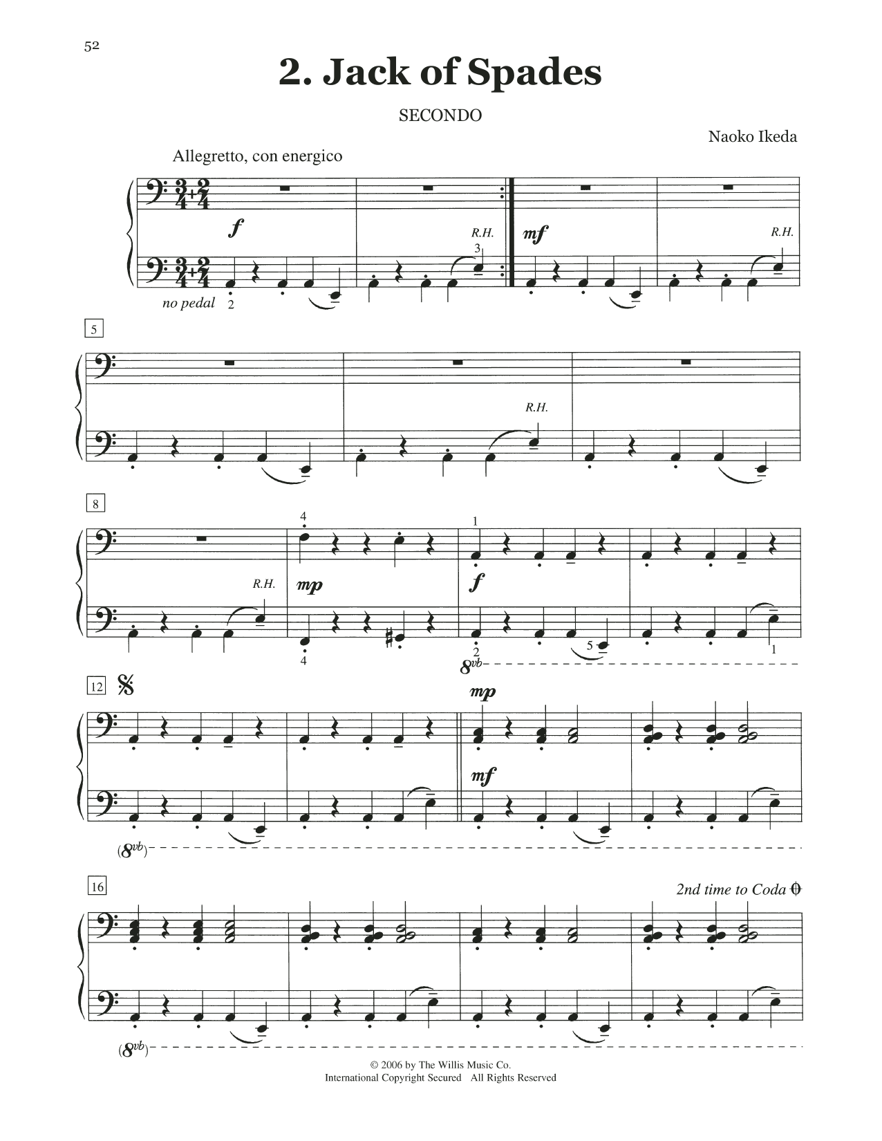 Download or print Naoko Ikeda Jack Of Spades sheet music, chords and digital score arranged for Piano Duet. This Instructional score includes 4 page(s).