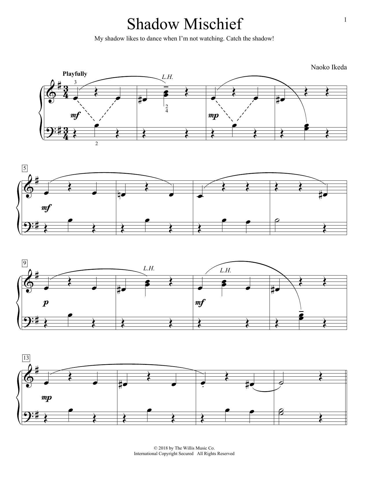 Download or print Naoko Ikeda Shadow Mischief sheet music, chords and digital score arranged for Educational Piano. This Children score includes 3 page(s).
