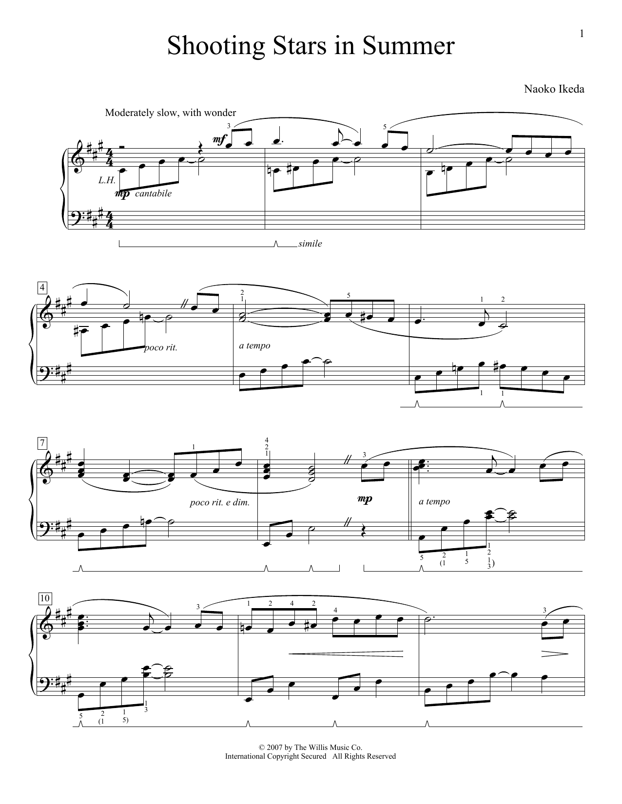 Download or print Naoko Ikeda Shooting Stars In Summer sheet music, chords and digital score arranged for Educational Piano. This Pop score includes 3 page(s).