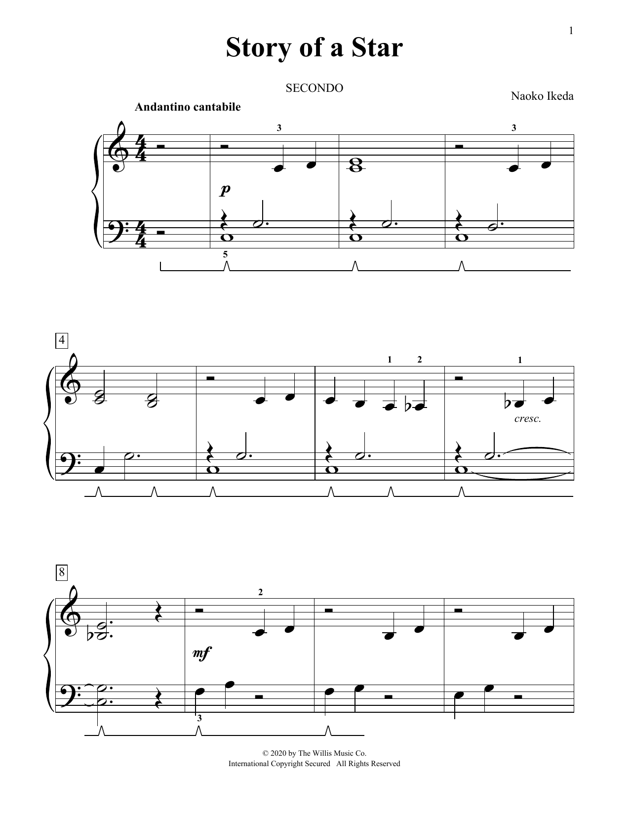 Download or print Naoko Ikeda Story Of A Star sheet music, chords and digital score arranged for Piano Duet. This Instructional score includes 4 page(s).