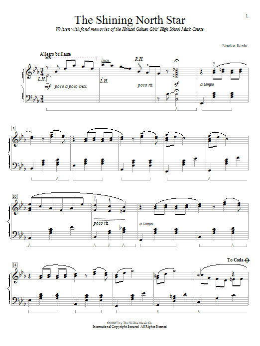 Download or print Naoko Ikeda The Shining North Star sheet music, chords and digital score arranged for Educational Piano. This Pop score includes 2 page(s).