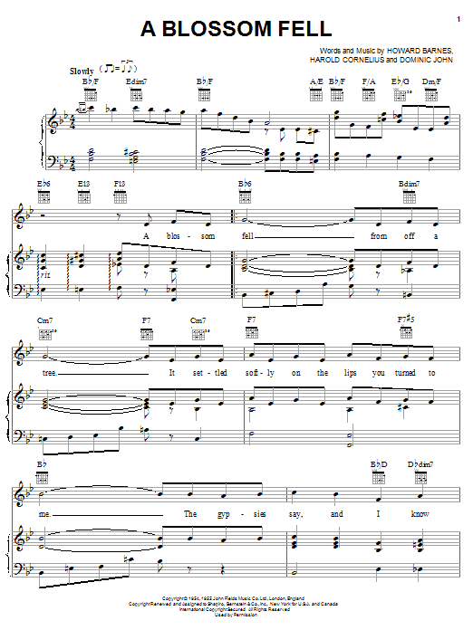 Download or print Nat King Cole A Blossom Fell sheet music, chords and digital score arranged for Piano, Vocal & Guitar Chords (Right-Hand Melody). This Jazz score includes 3 page(s).