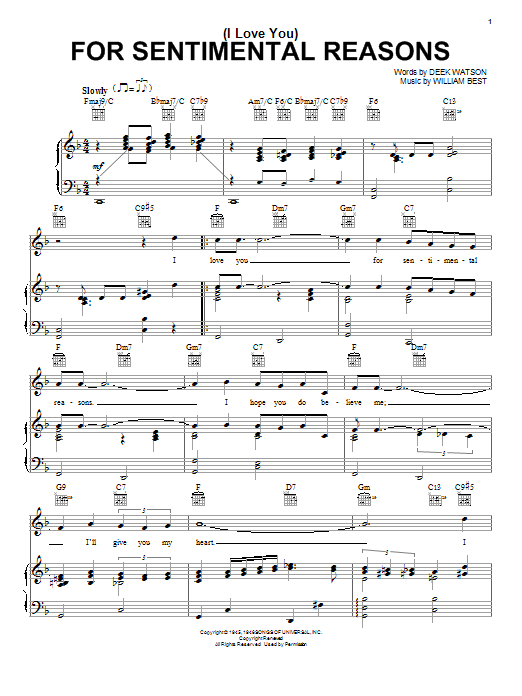 Quick facts (I Love You) For Sentimental Reasons about digital sheet music